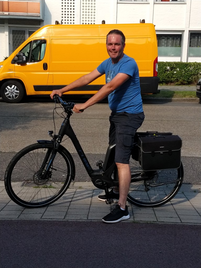 Met veel trots presenteren wij onze bedrijfs-hybride fiets om onze klanten op een leuke manier te bezoeken voor een offerte !